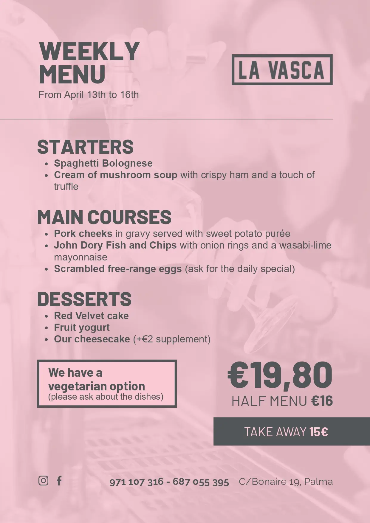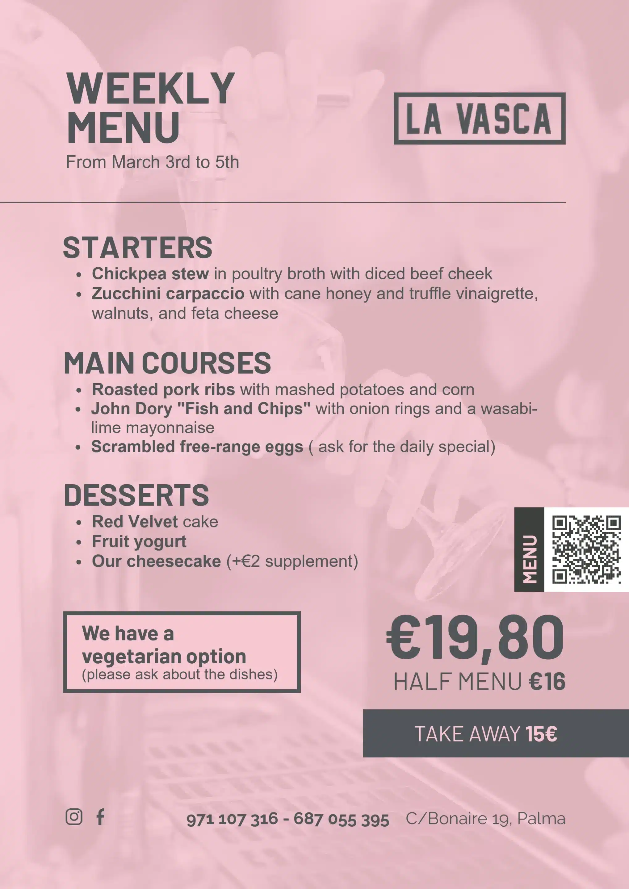 La Vasca weekly menu